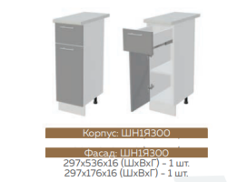 Глубина нижних шкафов без учета столешницы: 444 мм, с учетом столешницы 600 мм